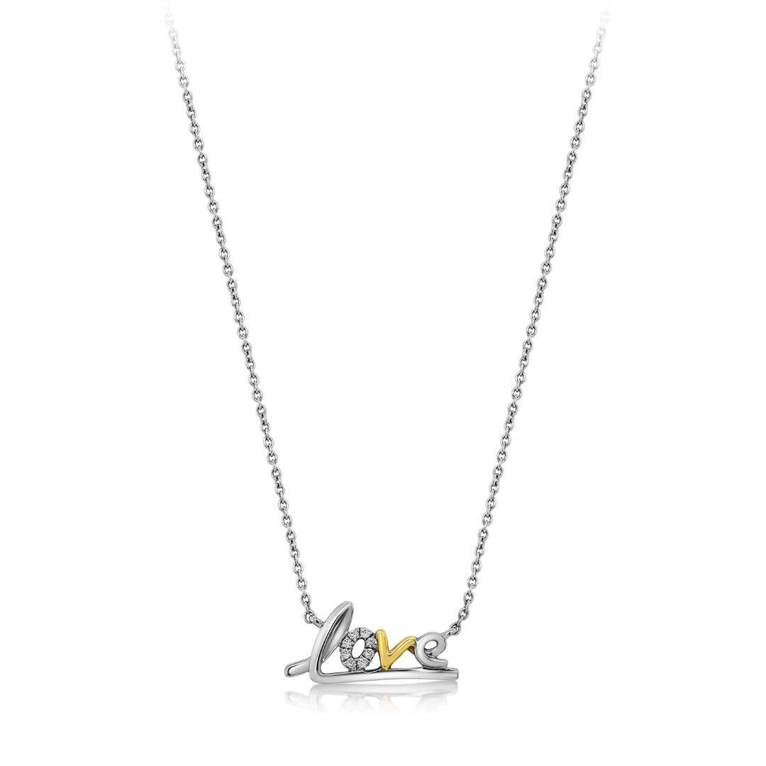 Lanț din aur alb de 18K și pandantiv 'Love' cu Diamante Round Brilliant de 0.02ct.