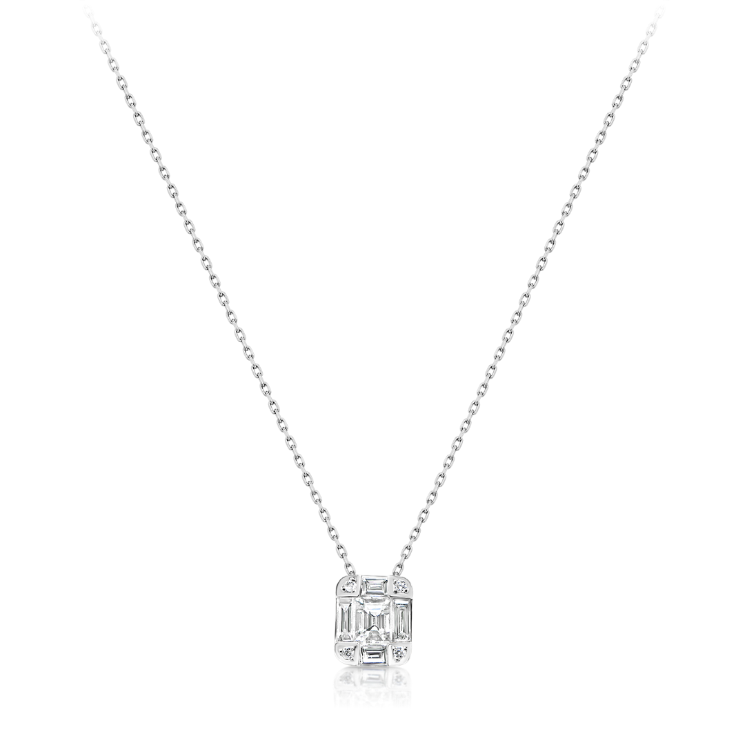 Lanț din aur alb de 14K și pandantiv cu Diamante naturale