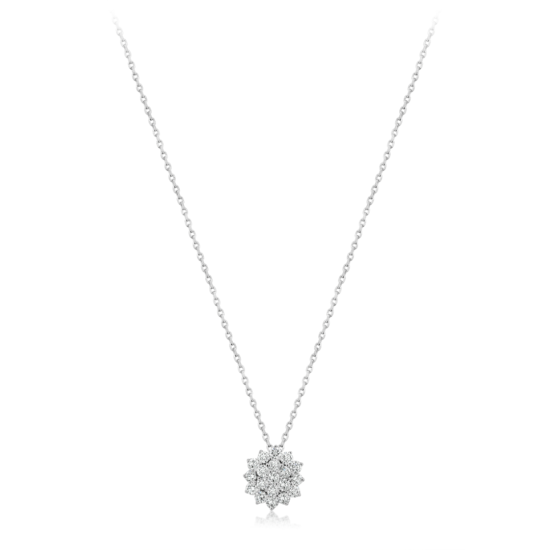 Lanț din aur alb de 18K și pandantiv încrustat cu Diamante naturale round brilliant de 0.38ct.