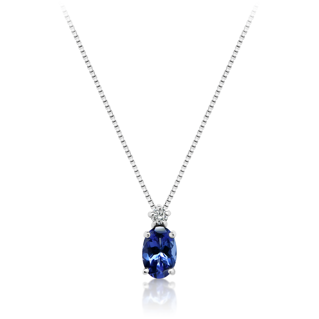 Lanț din aur alb de 18K și pandantiv cu un Diamant de 0.03ct și o piatră Tanzanit de 0.48ct.