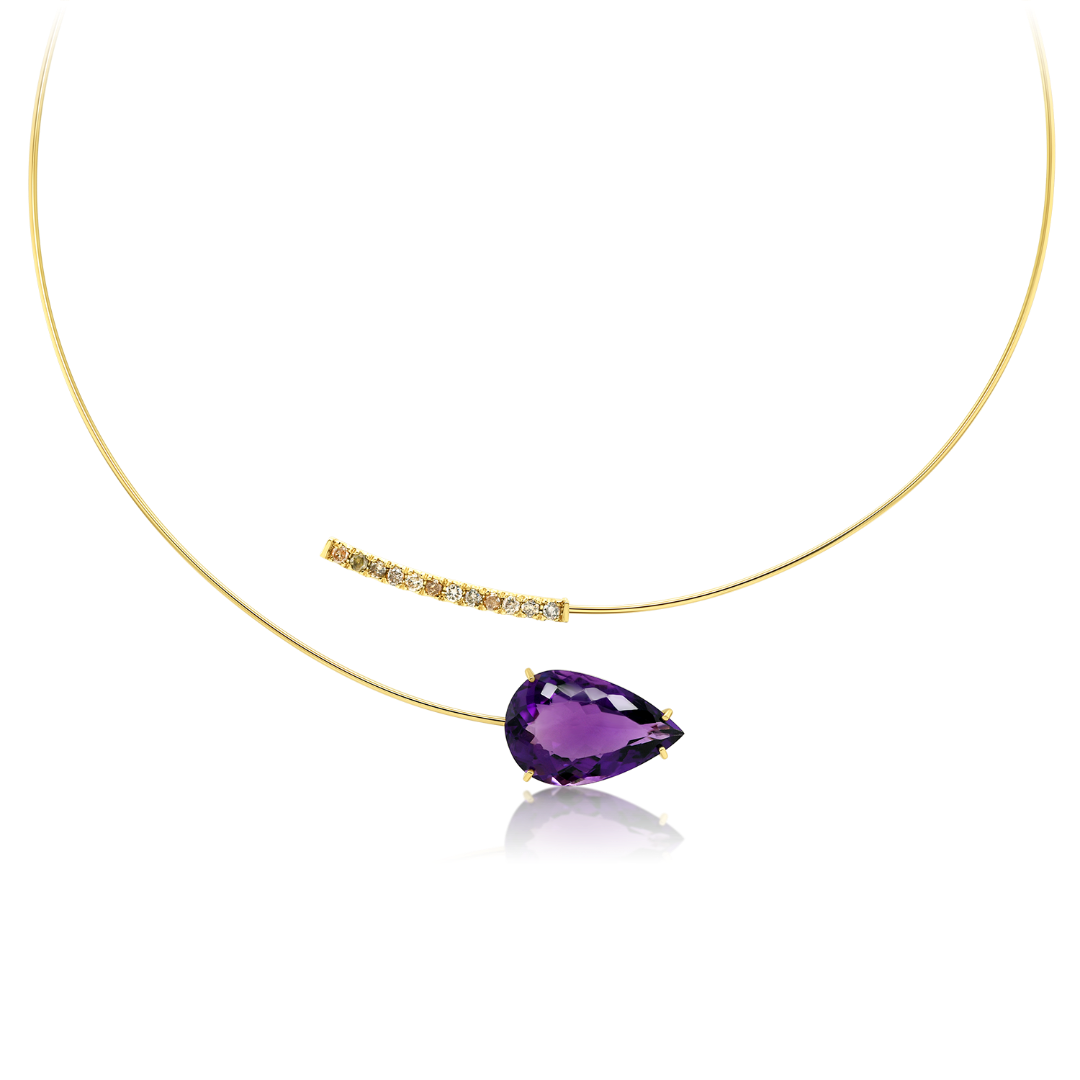 Colier din aur galben de 18K, cu Ametist și Diamante naturale