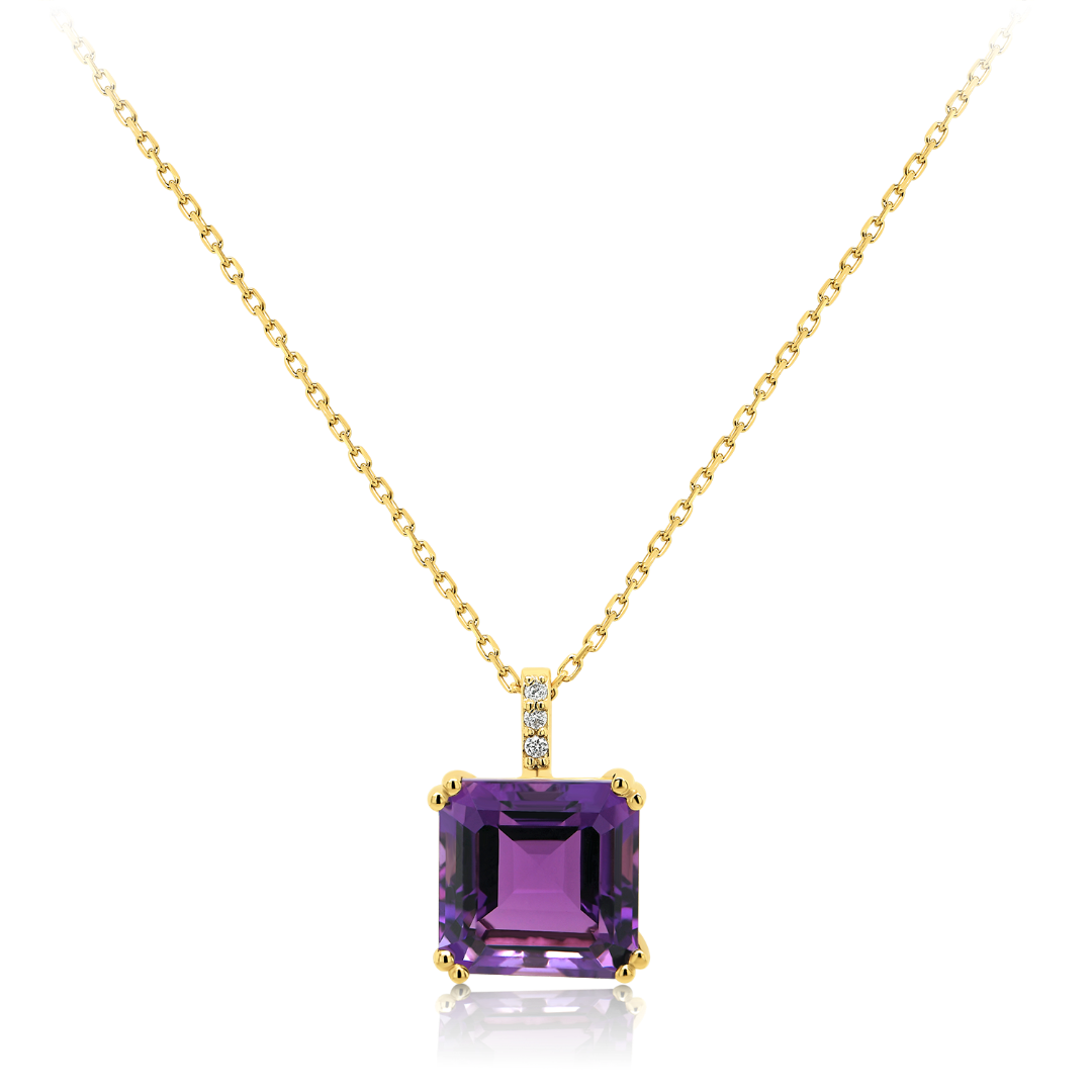 Lanț din aur galben de 18K și pandantiv cu un Ametist claritate AAA și Diamante Round Brilliant de 0.02ct.