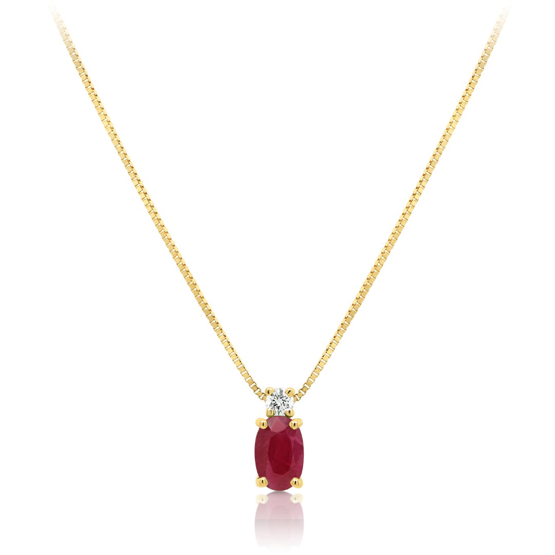 Lanț din aur galben de 18K și pandantiv cu Rubin și Diamant natural