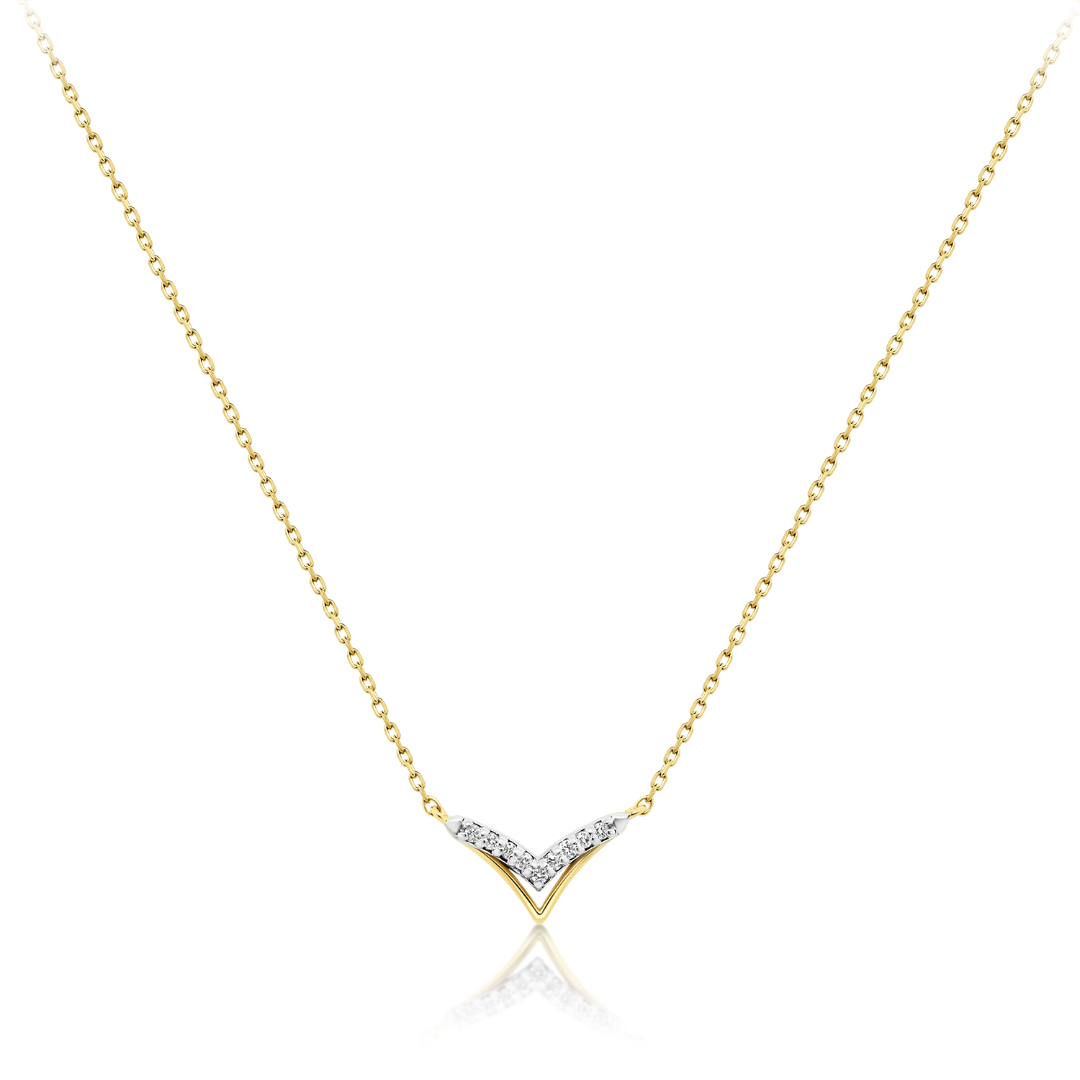 Lanț cu pandantiv din aur galben de 14K cu 9 Diamante naturale.
