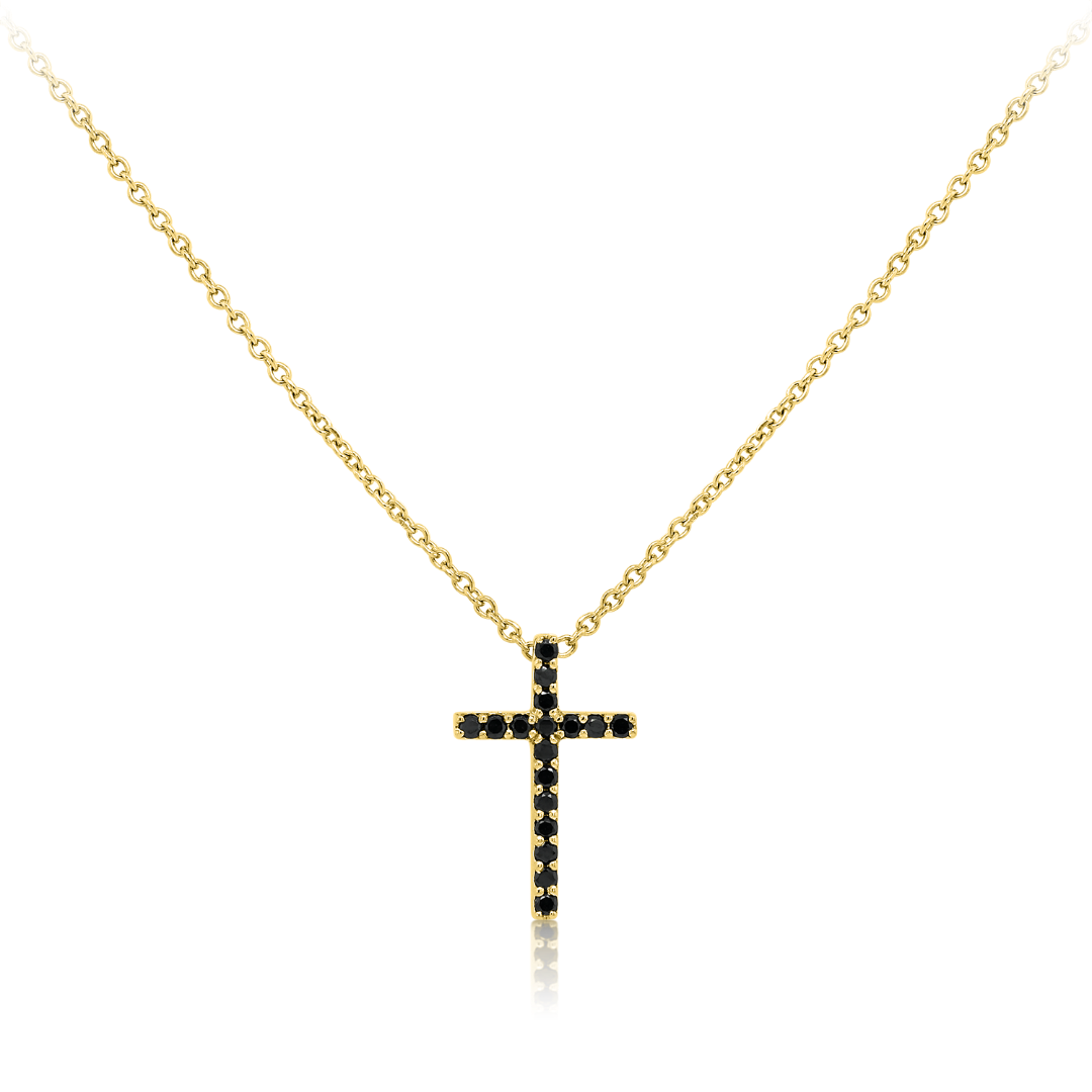 Lanț cu pandantiv din aur galben de 18K cu Diamante negre naturale de 0.085ct.