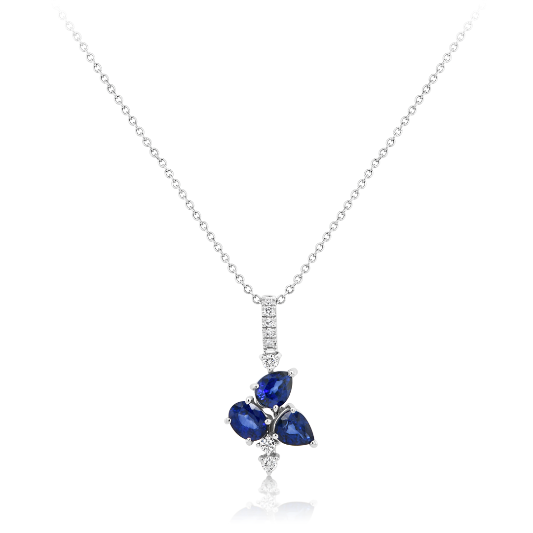 Lanț din aur alb de 18K și pandantiv cu Diamante naturale și Safire