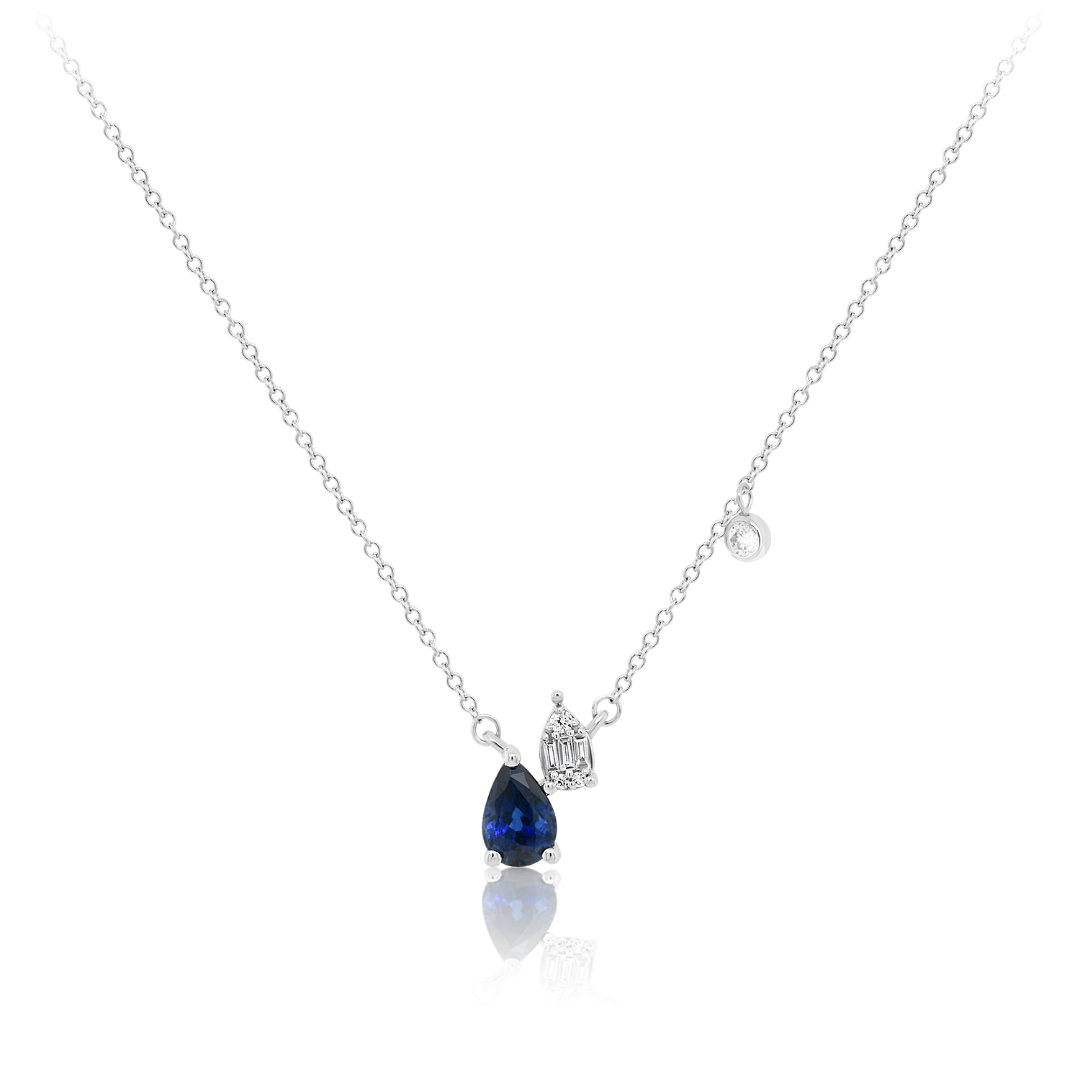 Lanț din aur alb de 18K, cu Safir albastru și Diamante naturale