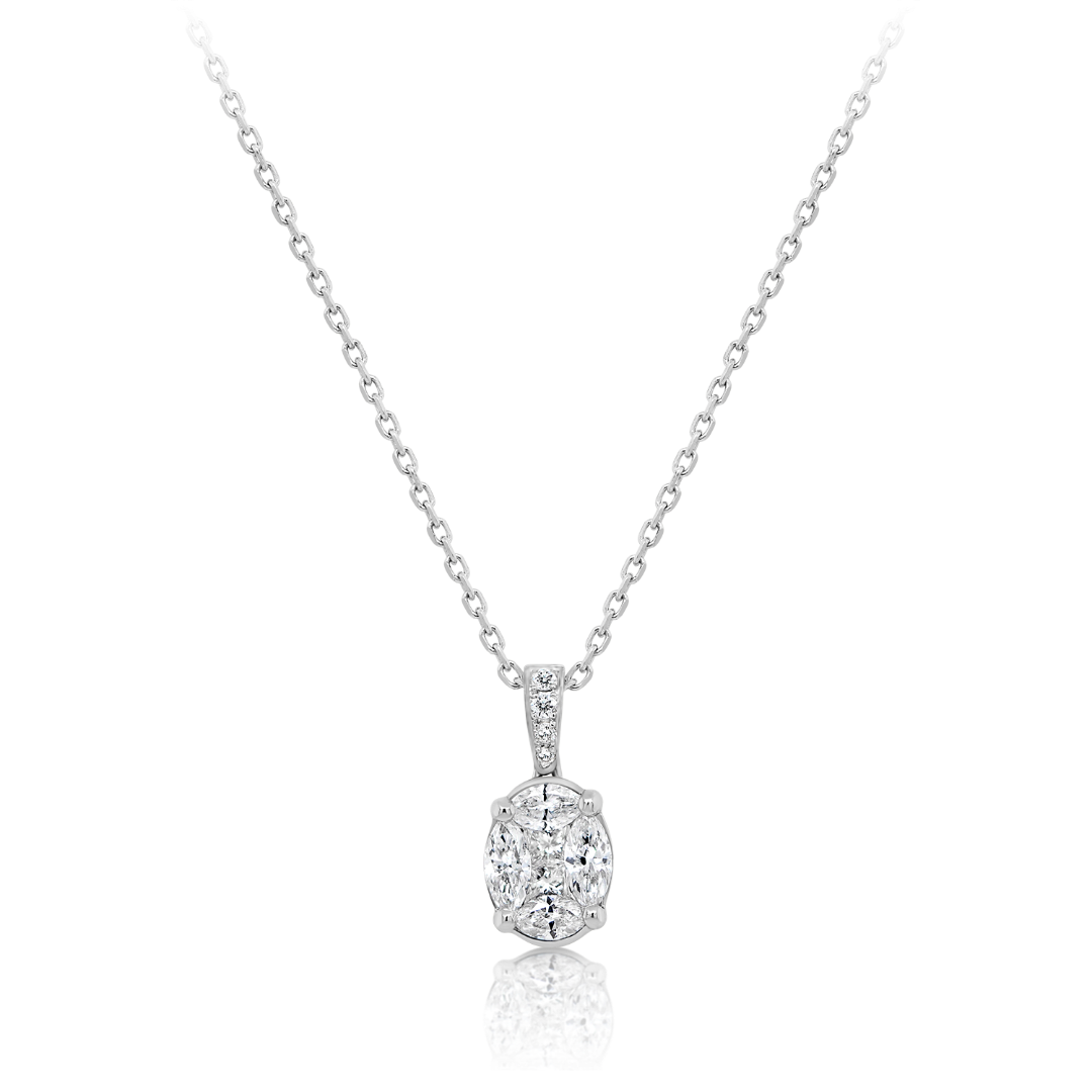 Lanț din aur alb de 18K și pandantiv cu două Diamante Princess de 0.08ct, 4 Diamante Brilliant de 0.04ct și 4 Diamante Marquise de 0.33ct.