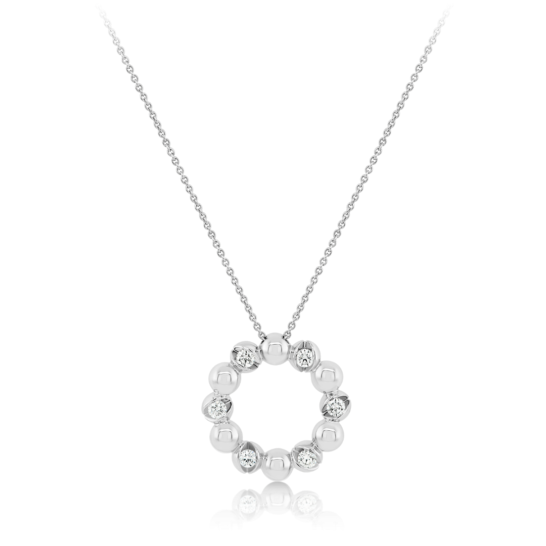 Lanț din aur alb de 18K și pandantiv cu Diamante naturale Round Brilliant de 0.25ct.