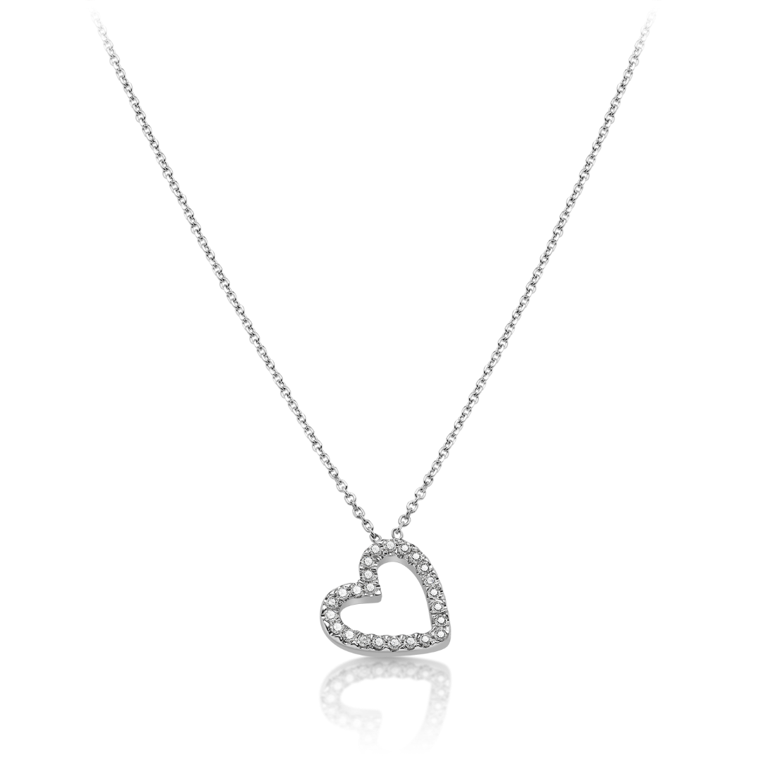 Lanț din aur alb de 18K și pandantiv inimă cu Diamante naturale.