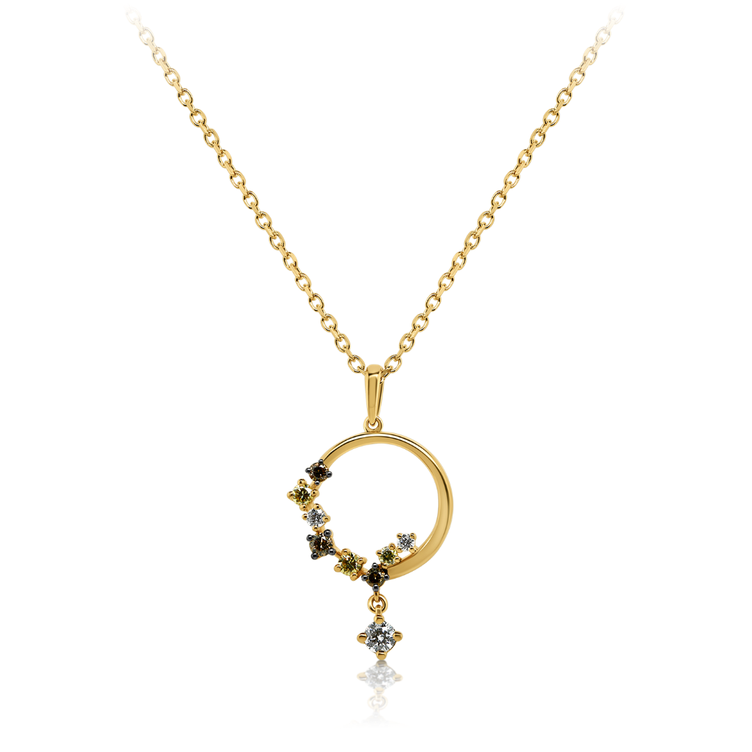 Lanț din aur galben de 18K și pandantiv încrustat cu 6 Diamante albe de 0.126ct., 3 Diamante maro de 0.097ct. și 3 Diamante galbene de 0.093ct.