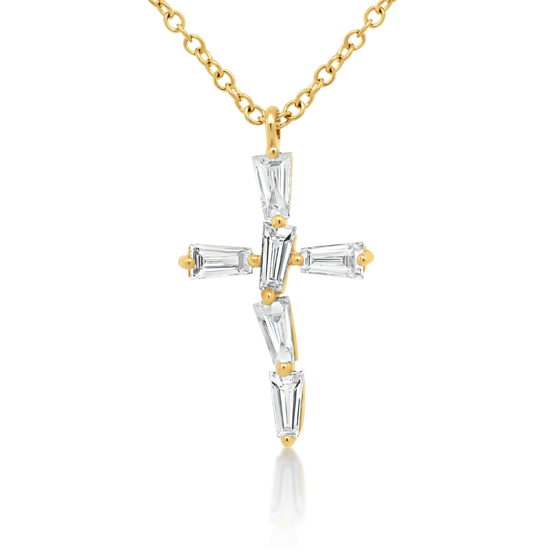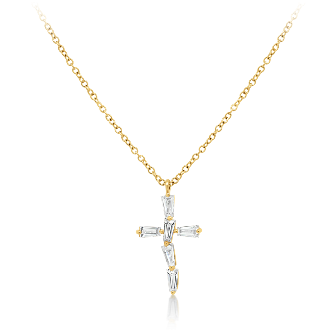 Lanț din aur galben de 18K și pandantiv cruce cu Diamante naturale Tapered Baguette de 0.177ct.