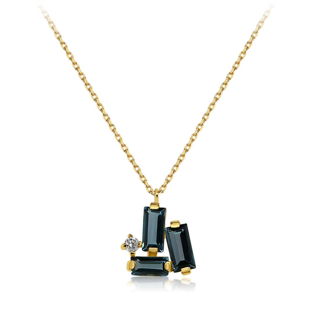 Lanț din aur galben de 14K și pandantiv cu un Diamant de 0.04ct. și 3 Topaze albastre.