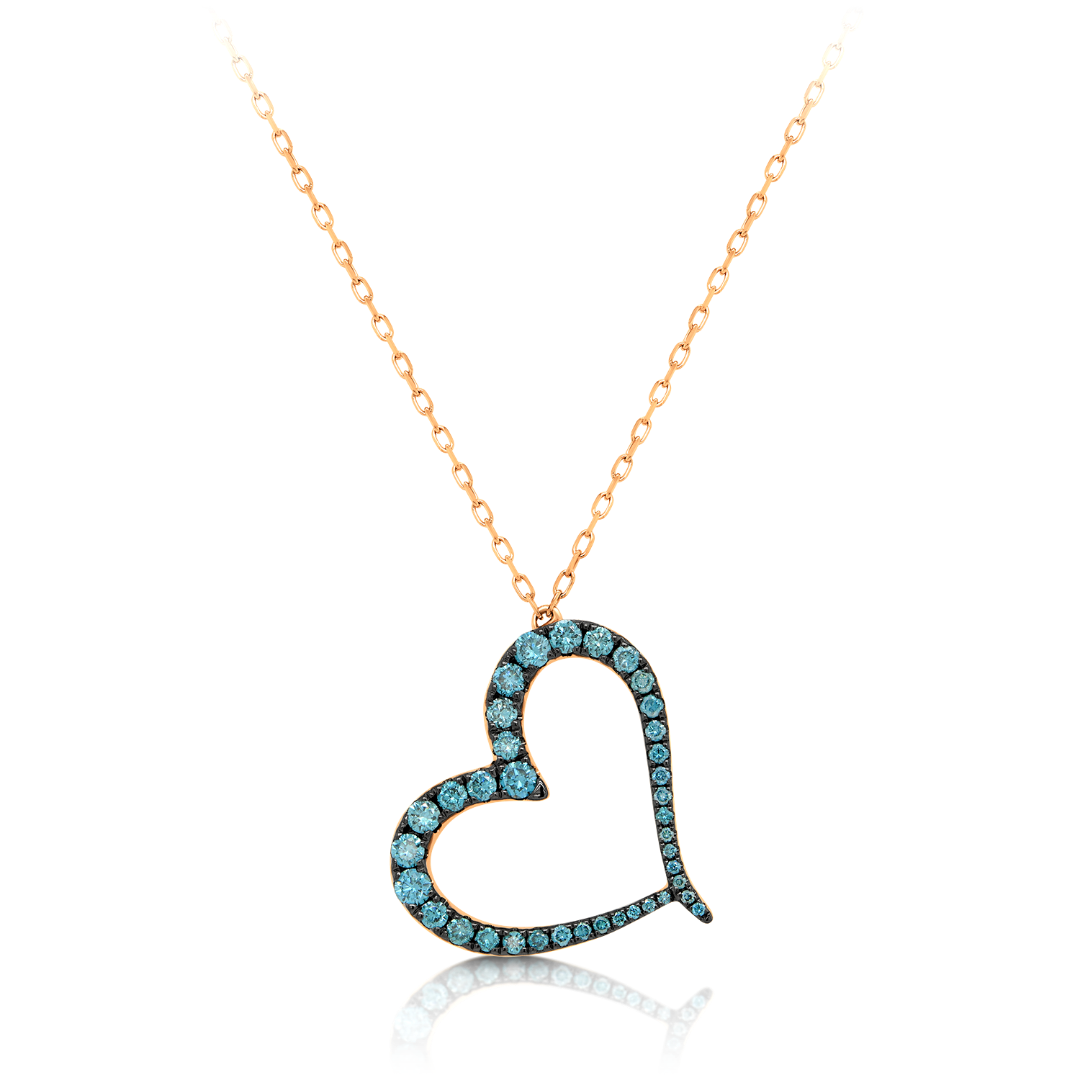 Lanț din aur roz de 18K si pandantiv inimă încrustat cu 38 de Diamante naturale Ice Blue de 0.56ct.