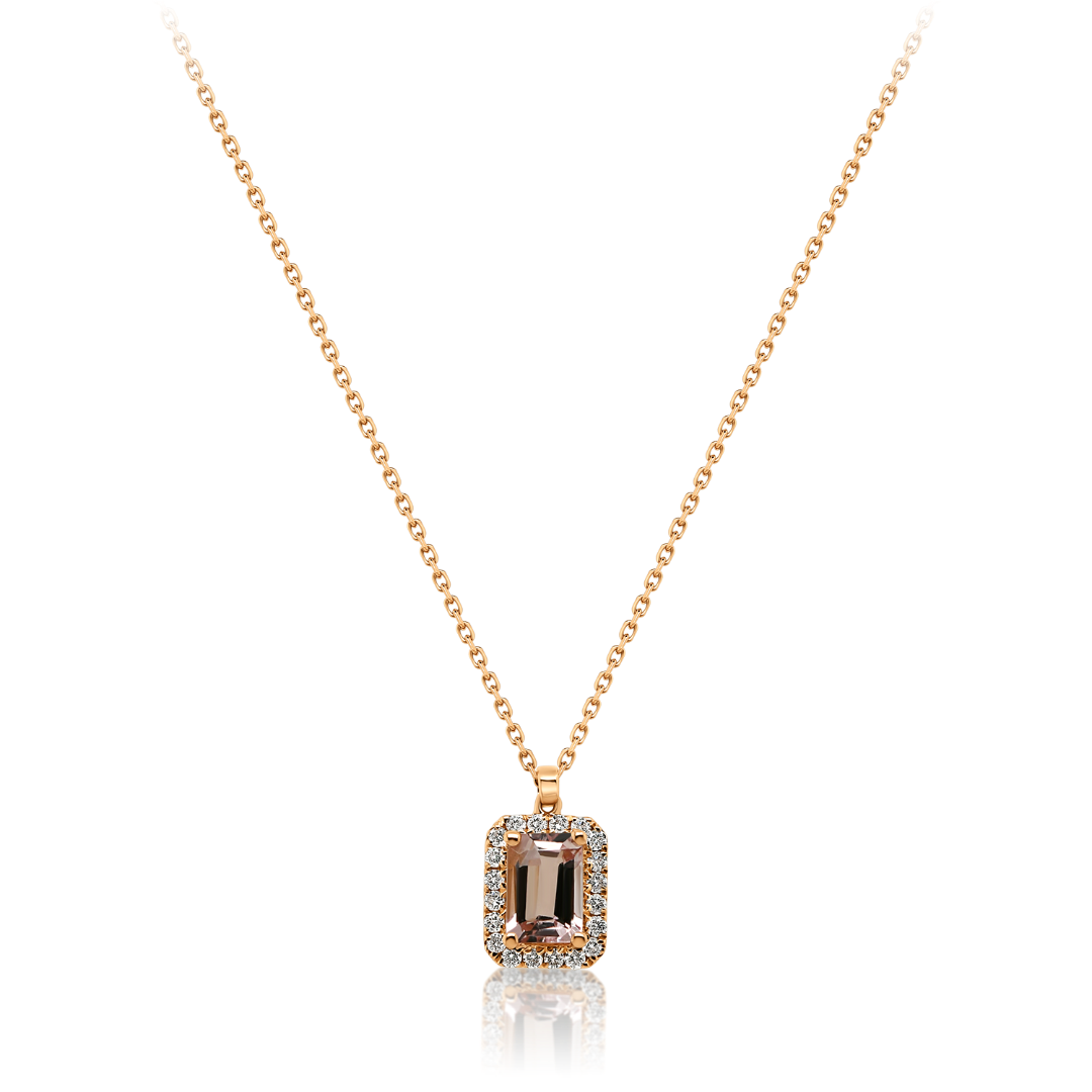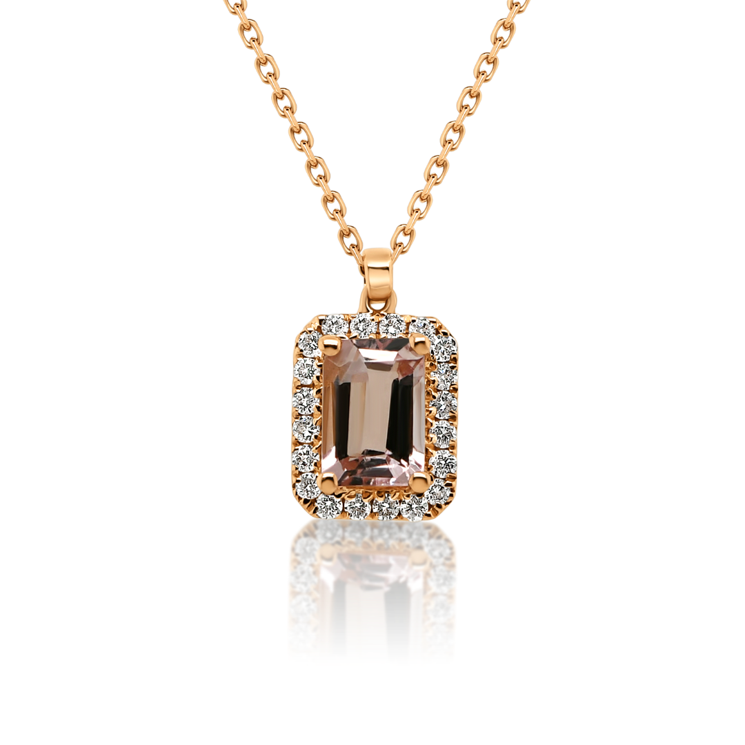 Lanț din aur roz de 18K și pandantiv cu un Morganit roz de 0.52ct și 20 de Diamante Round Brilliant de 0.116ct.