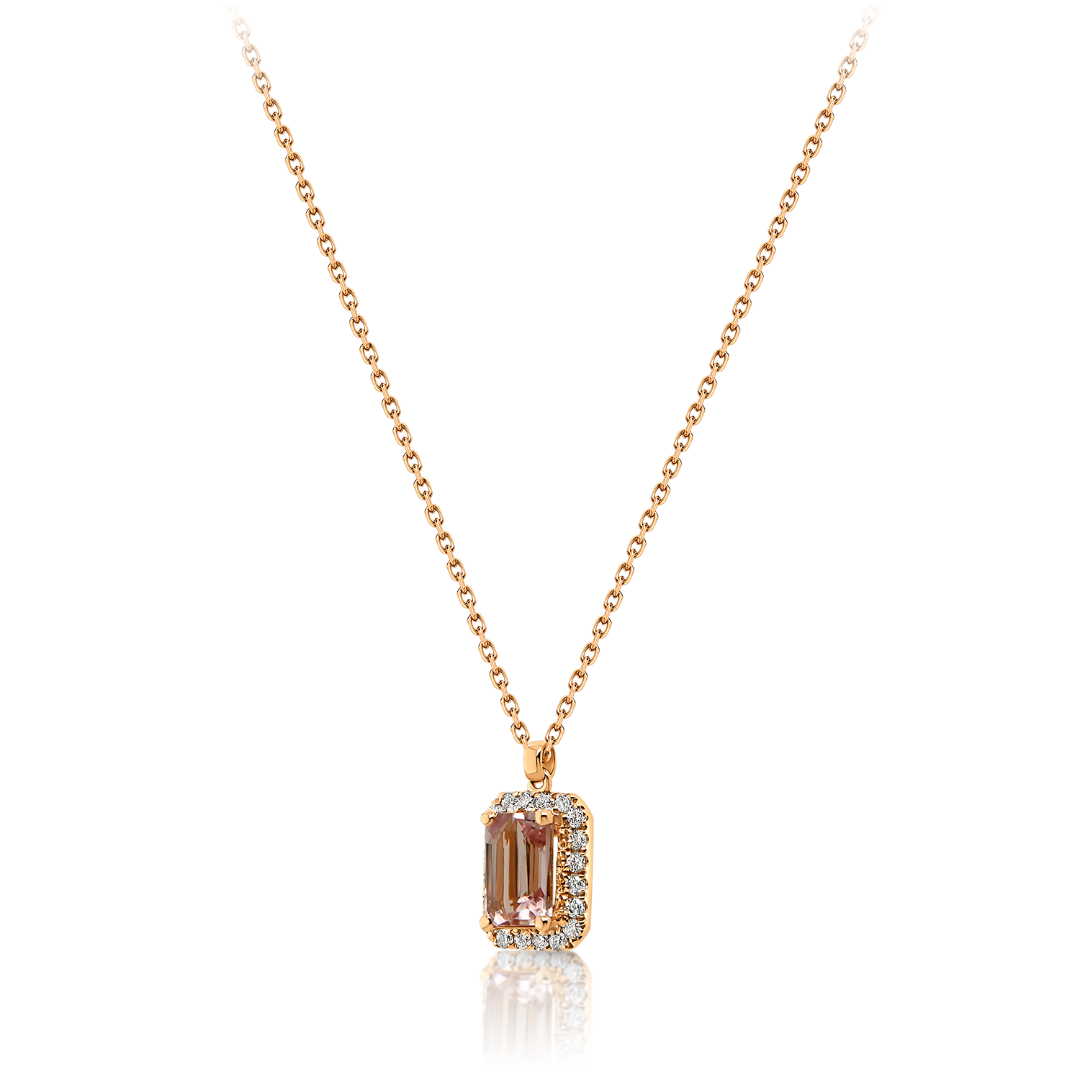 Lanț din aur roz de 18K și pandantiv cu Morganit și Diamante naturale