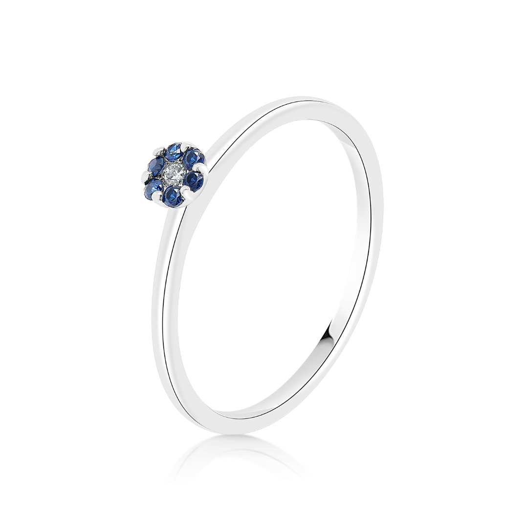 Inel din aur alb de 18K încrustat cu Safire de 0.04ct și un Diamant de 0.02ct.