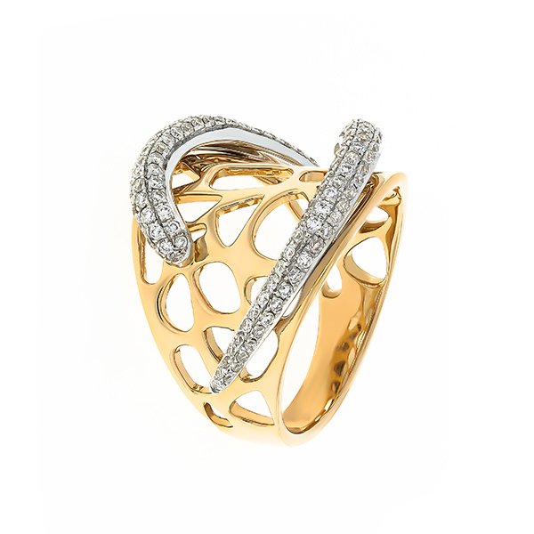 Inel cu decupaje din aur roz de 18K cu elemente încrustate în Diamante Brilliant cut de 0.62ct.
