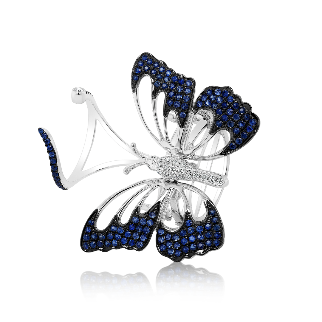 Inel cu design unic din aur alb de 18K încrustat cu 33 de Diamante de 0.24ct. si Safire albastre de 1.0ct.