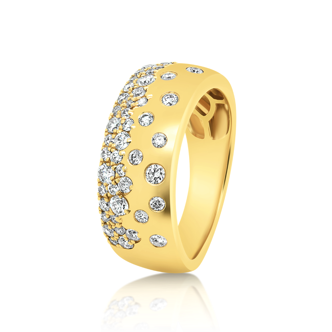 Inel din aur galben de 14K, încrustat cu 53 de Diamante Round Brilliant de 0.81ct.