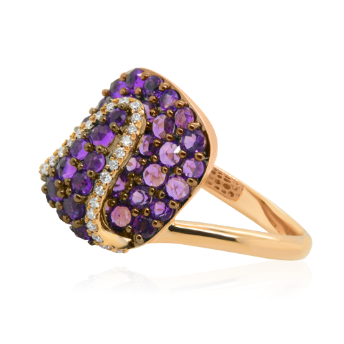Inel din aur roz de 18K, cu Diamante și Ametist