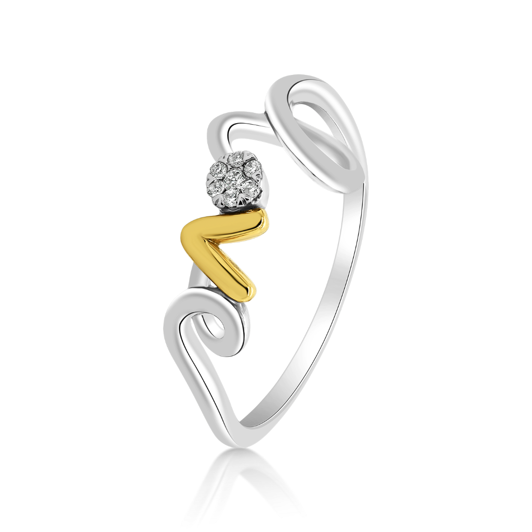 Inel din aur alb de 18K, cu un element din aur galben, încrustat cu Diamante albe de 0.03ct.