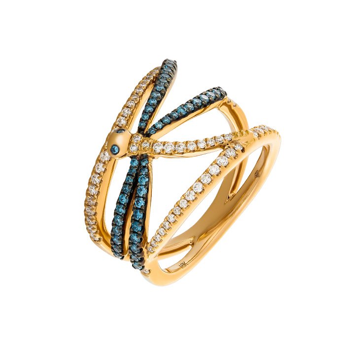 Inel din aur roz de 18K, încrustat cu Diamante colorate de 0.26ct și Diamante albe de 0,26ct, G-H/SI.