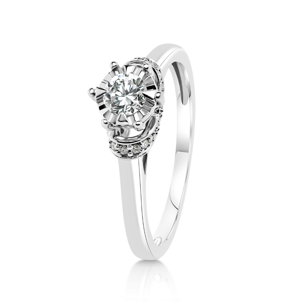 Inel de logodnă din aur alb de 18K, încrustat cu 25 de Diamante naturale Round Brilliant cu o greutate totală de 0.25ct.