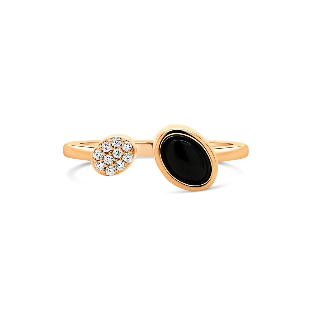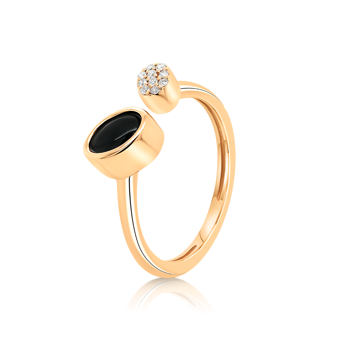 Inel din aur roz de 18K, cu 10 Diamante Brilliant de 0.05ct și o piatră Onix de 0.61ct.