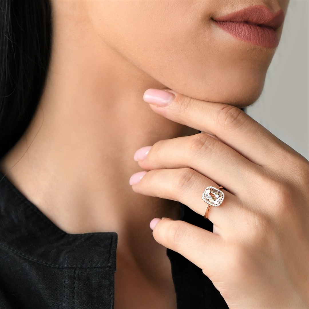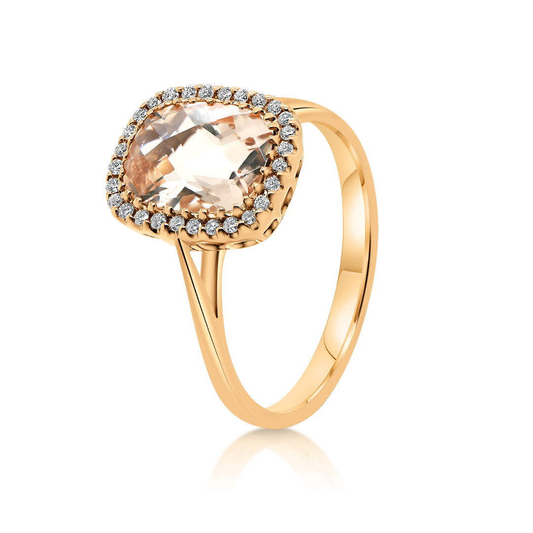 Inel din aur roz de 18K, cu Diamante și piatră Morganit