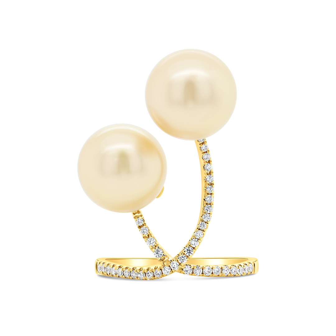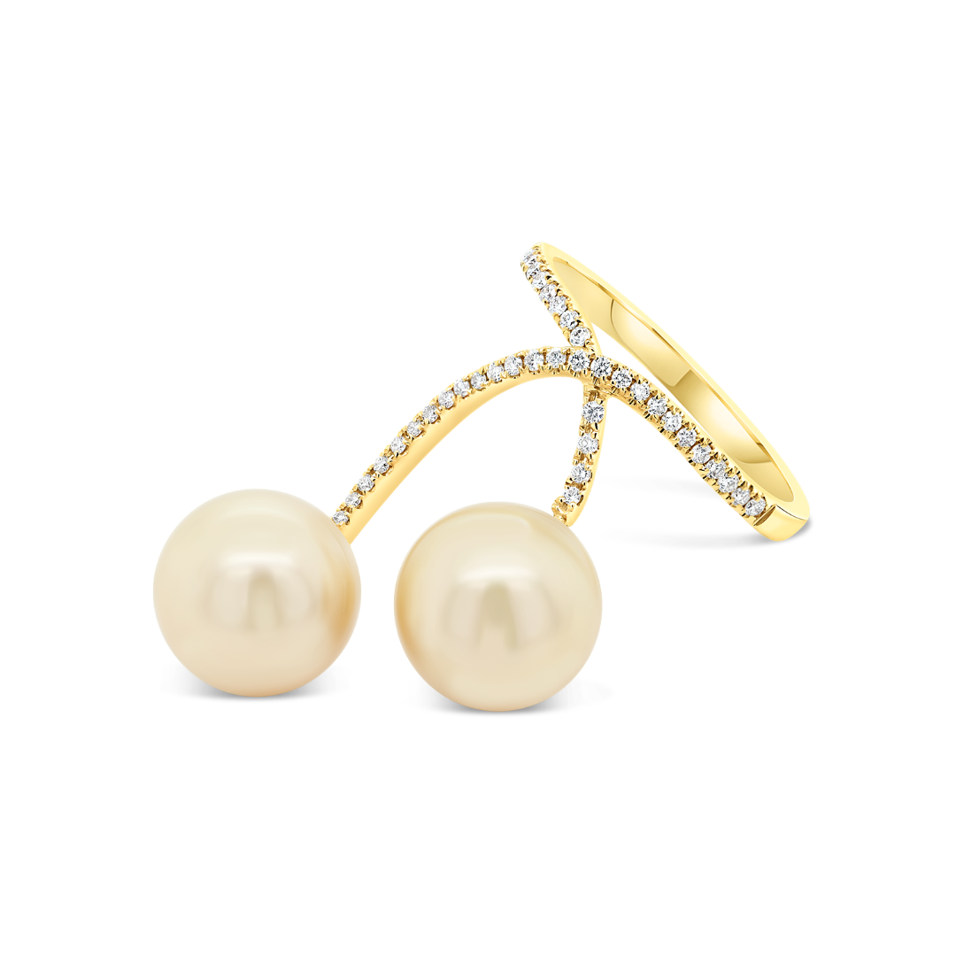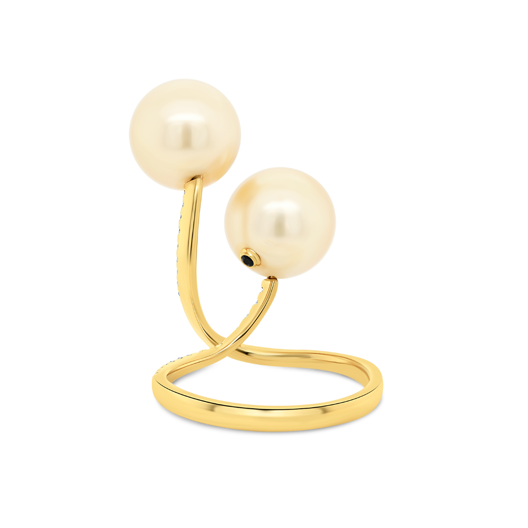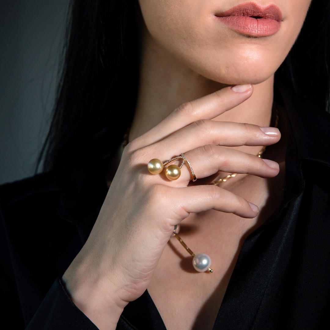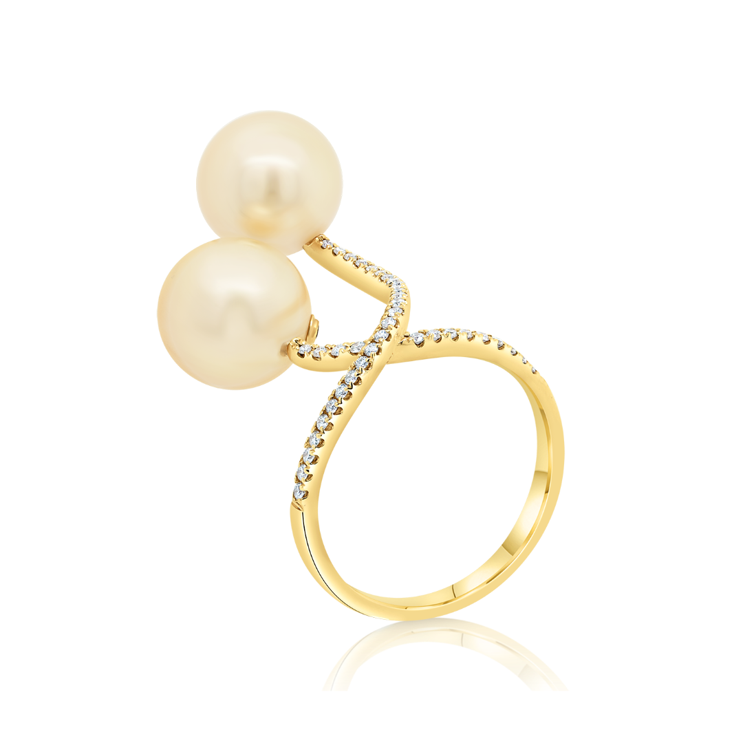Inel din aur galben de 18K cu Perle de apă sărată și Diamante naturale