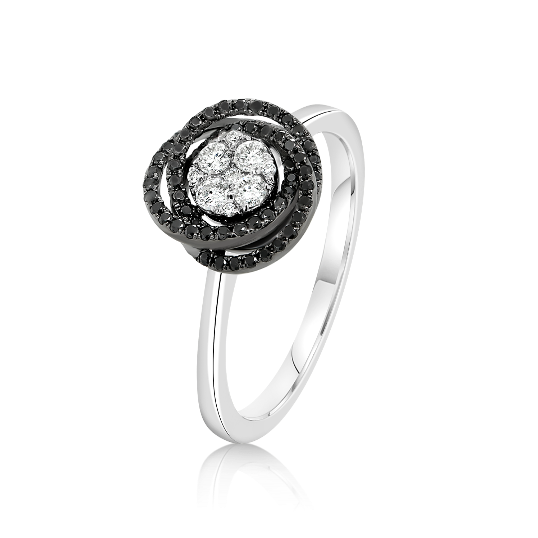 Inel din aur alb de 18K, încrustat cu 9 Diamante naturale incolore și 60 de Diamante negre.