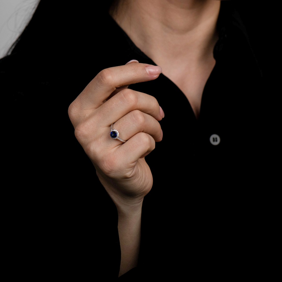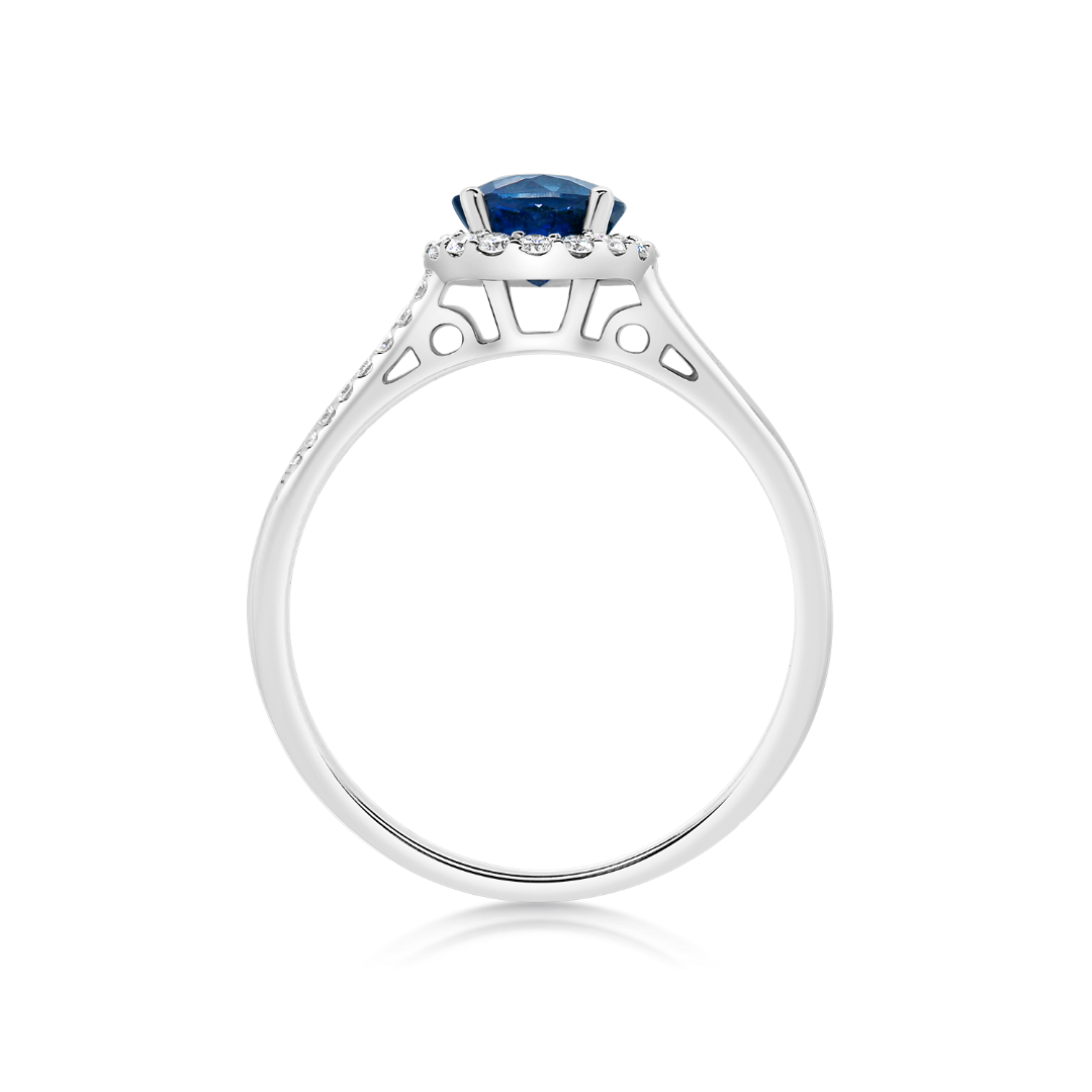 Inel din aur alb de 18K, cu Diamante și Safir albastru