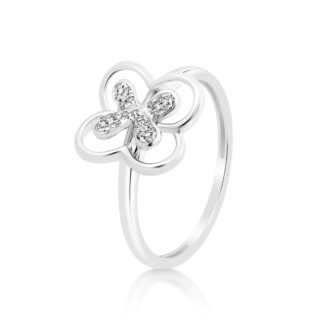 Inel din aur alb de 14K cu Diamante naturale.
