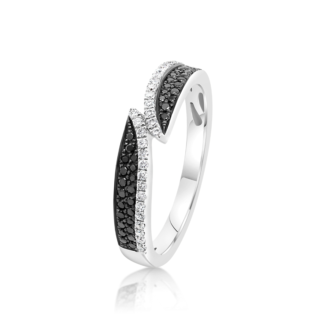Inel din aur alb de 18K cu Diamante Round Brilliant incolore și negre, cu o greutate totală de 0.31ct.