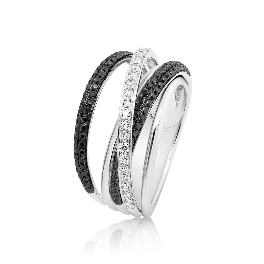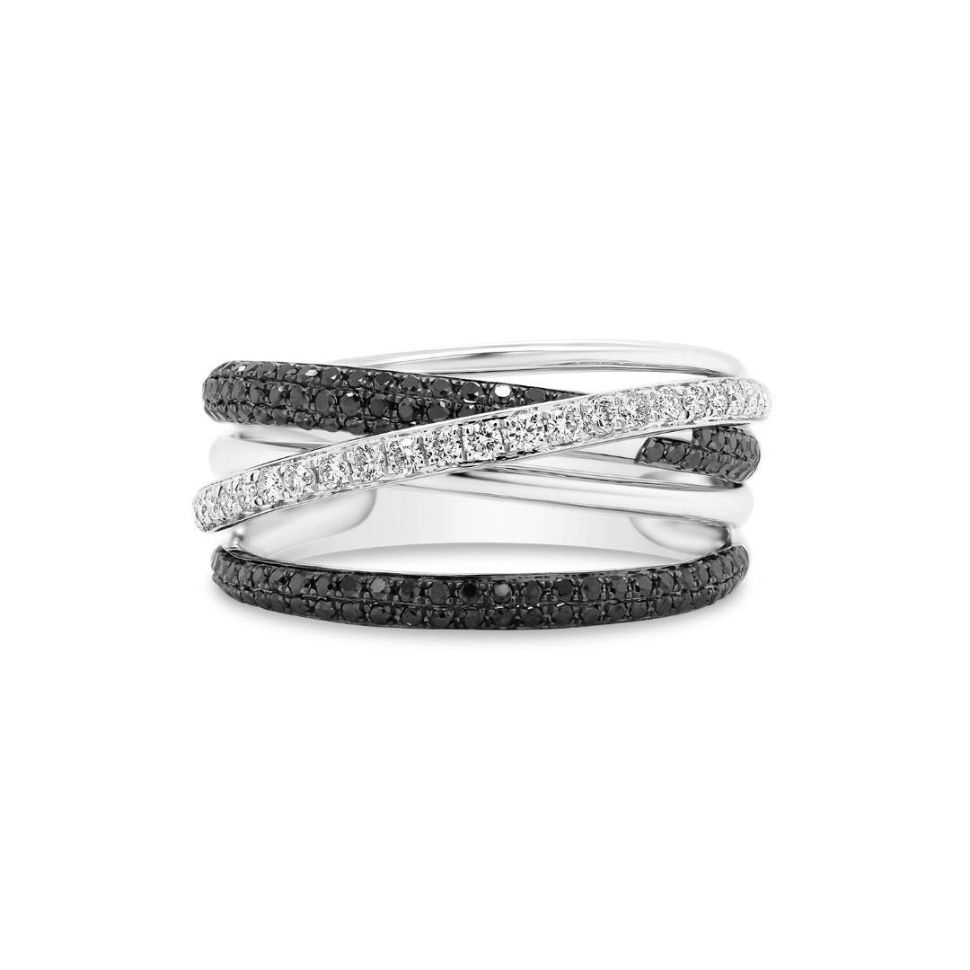 Inel din aur alb de 18K, încrustat cu 24 de Diamante incolore Round Brilliant de 0.224ct și 124 de Diamante negre de 0.504ct.