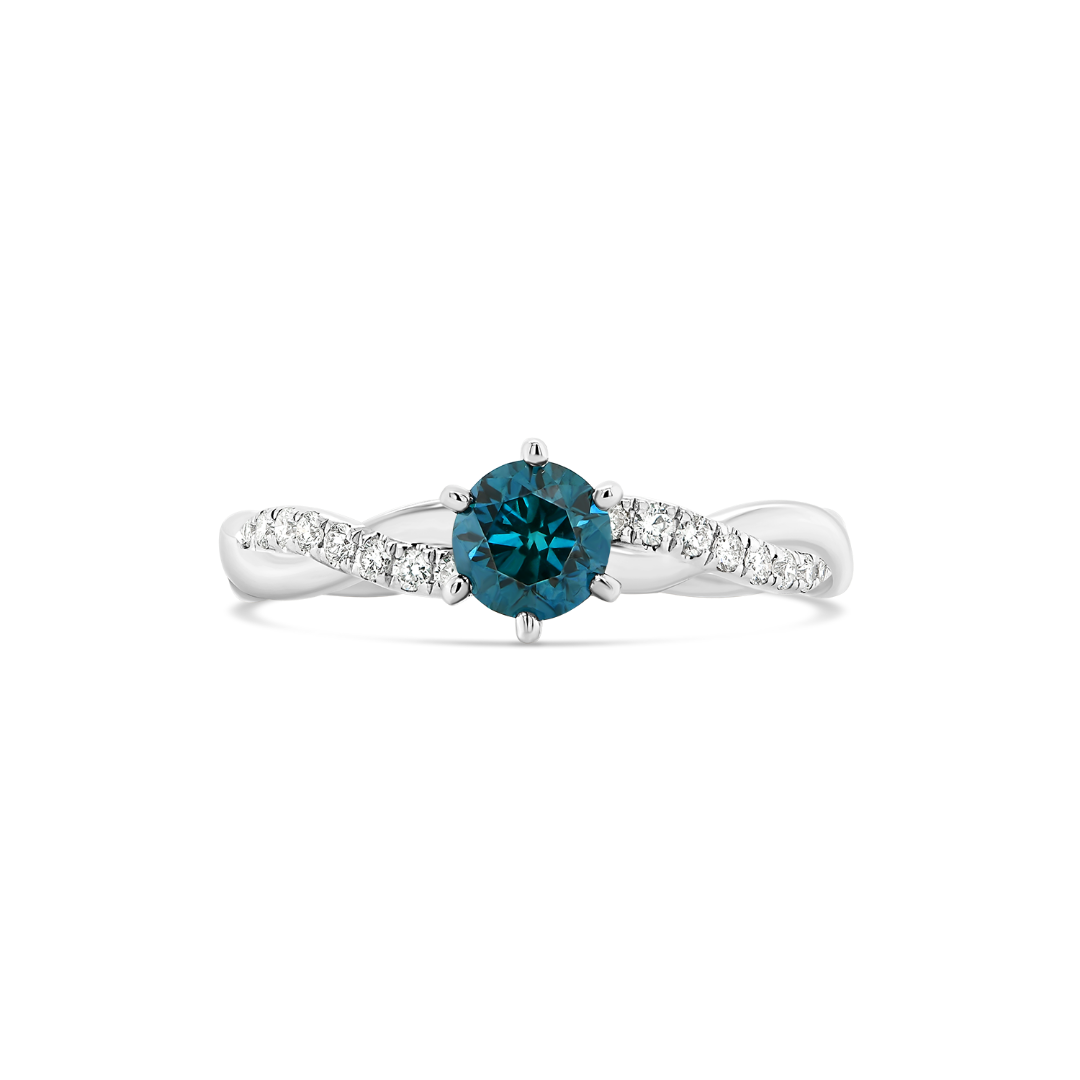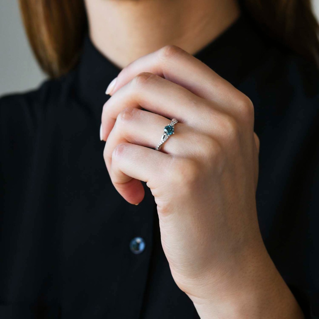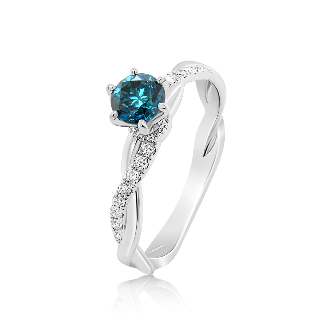 Inel din aur alb de 18K, încrustat cu 16 Diamante naturale incolore de 0.14ct și un Diamant natural albastru de 0.50ct.