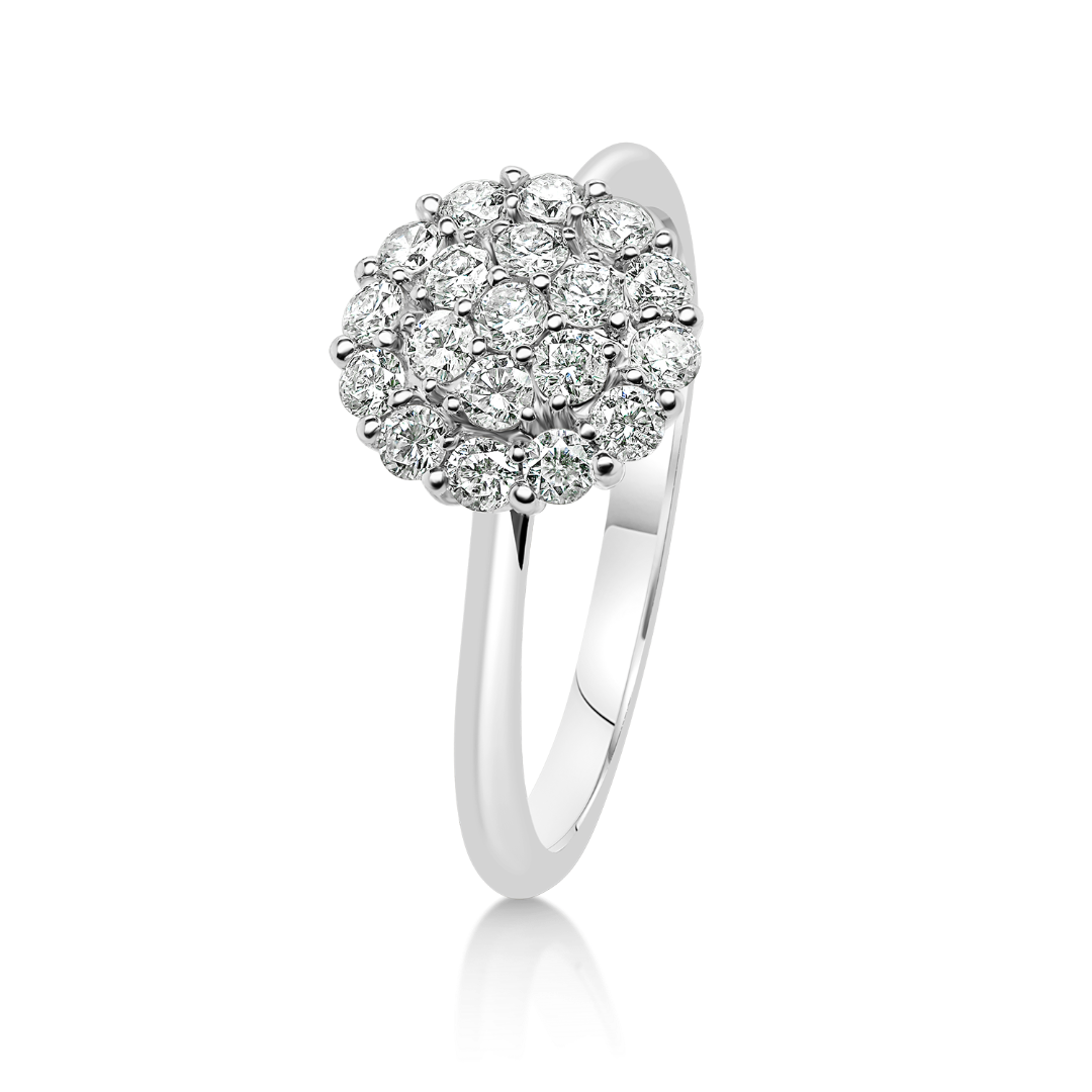Inel din aur alb de 18K, încrustat cu 19 Diamante naturale Round Brilliant de 0.410ct.
