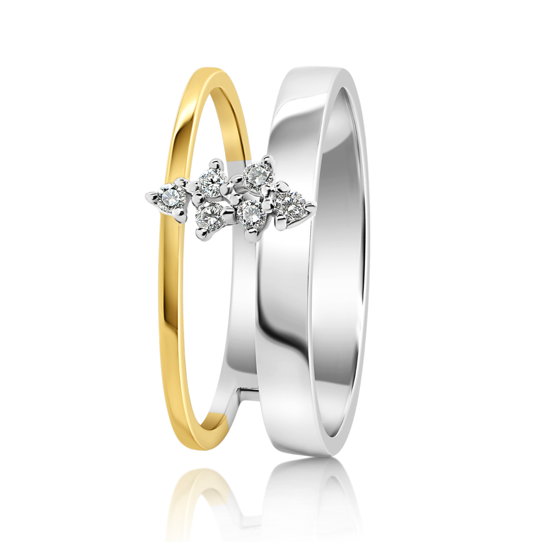 Inel din aur alb de 18K, cu element din aur galben și 6 Diamante naturale, Round Brilliant de 0.07ct.