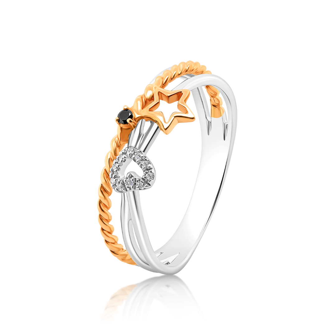 Inel din aur alb de 18K cu element din aur roz și Diamante naturale negre și incolore.