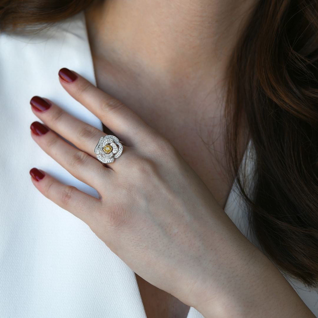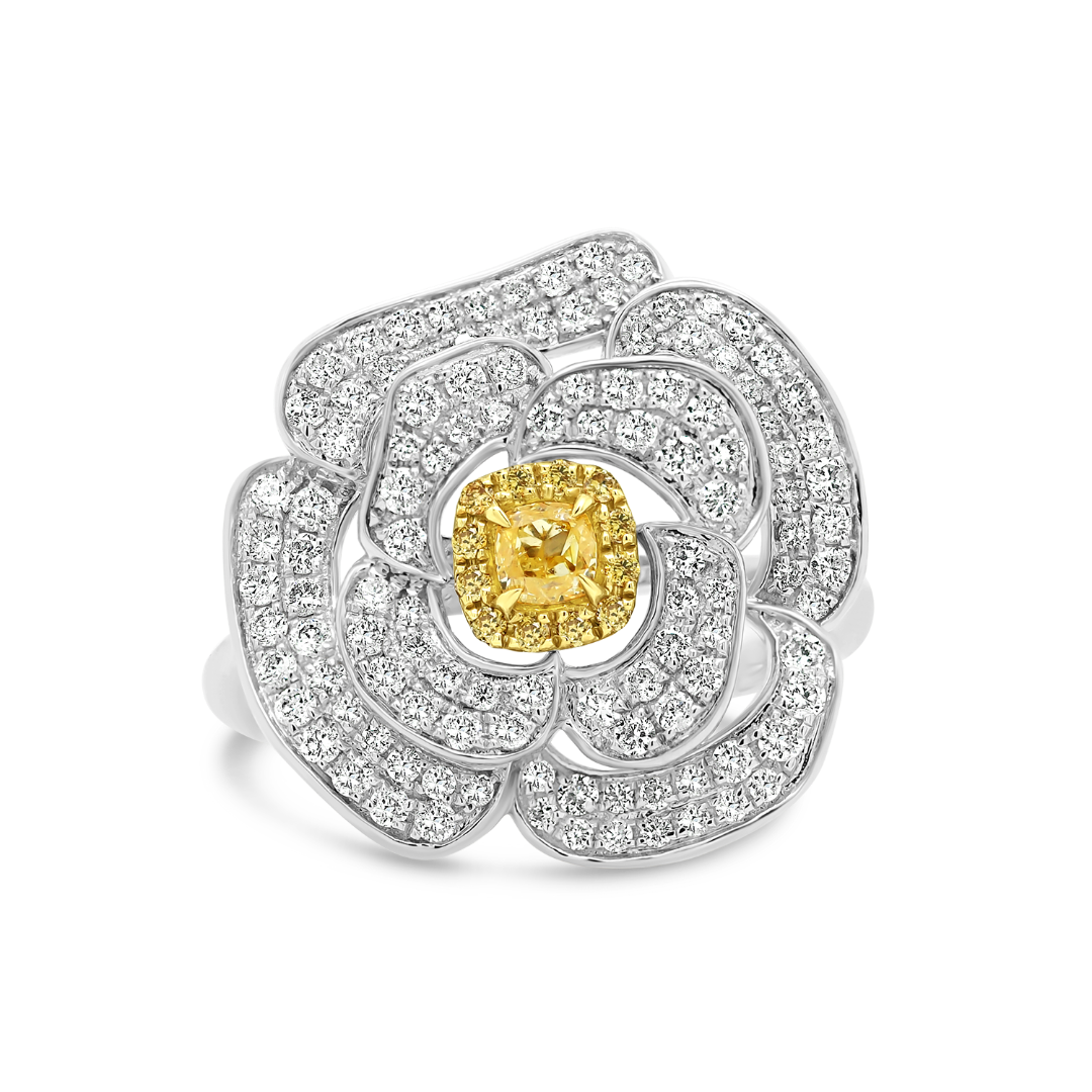 Inel din aur alb de 18K, încrustat cu Diamante Fancy de 0.15ct și Diamante incolore de 0.75ct.