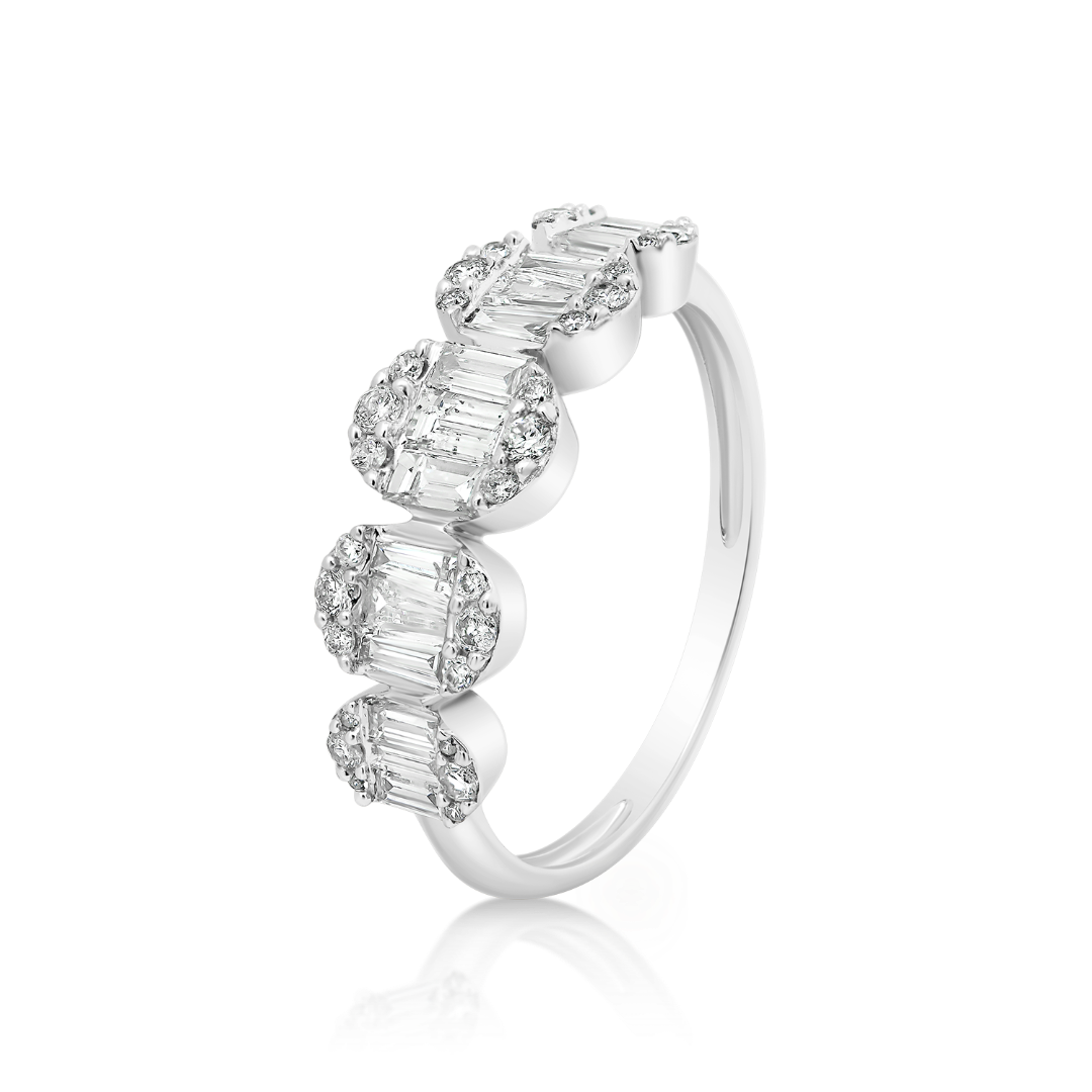 Inel din aur alb de 18K cu Diamante naturale Baguette și Round Brilliant.