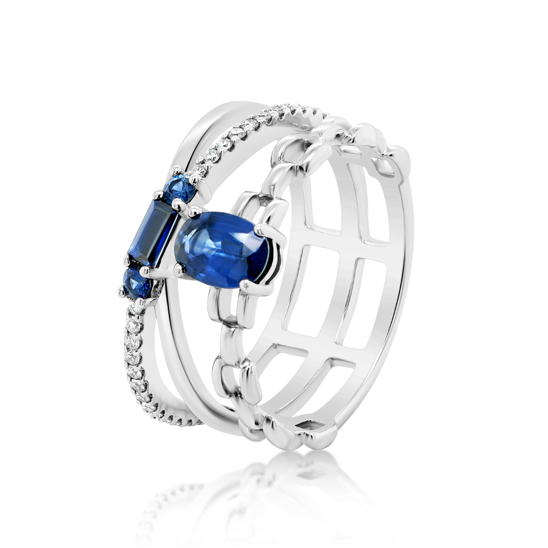 Inel din aur alb de 18K cu Diamante naturale și Safire