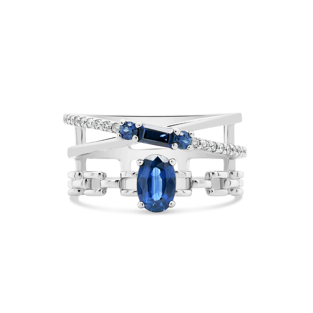 Inel din aur alb de 18K cu 30 de Diamante naturale cu o greutate totală de 0.15ct. și Safire cu o greutate totală de 0.79ct.