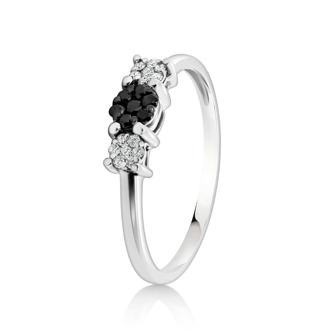 Inel din aur alb de 18K, încrustat cu Diamante albe 0.06ct. și Diamante negre de 0.08ct.