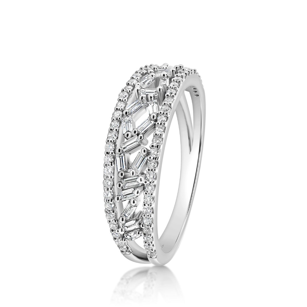 Inel din aur alb de 18K cu 20 de Diamante Baguette cut de 0.16ct și 54 de Diamante Round Brilliant de 0.22ct.