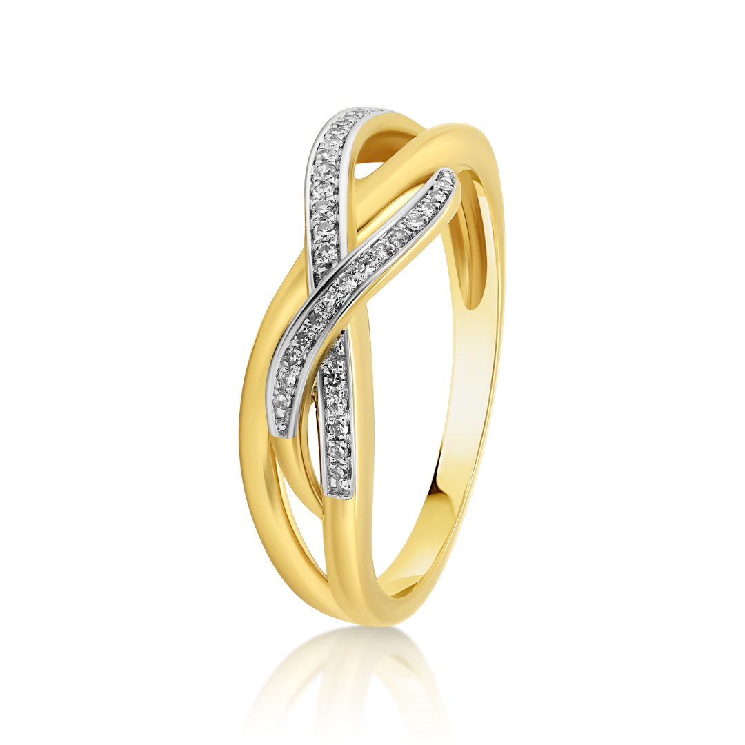 Inel din aur galben de 18K cu rodiu alb, încrustat cu 32 de Diamante naturale de 0.08ct.