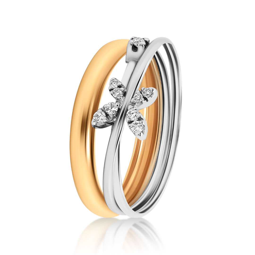 Inel din aur alb și roz de 18K încrustat cu Diamante albe de 0.08ct.