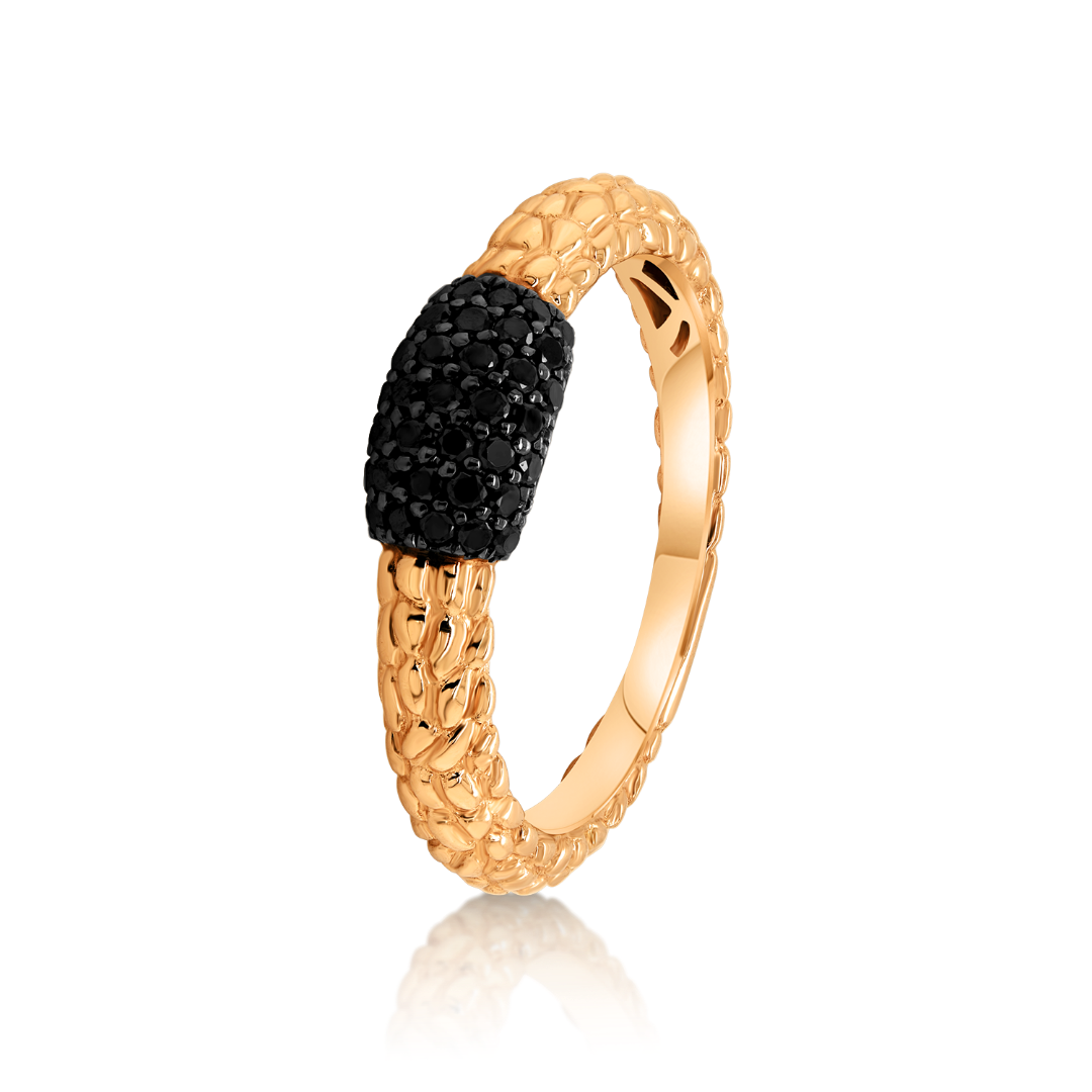 Inel din aur roz de 18K cu design fațetat, Rodiu negru și Diamante naturale de 0.27ct. VS-SI.