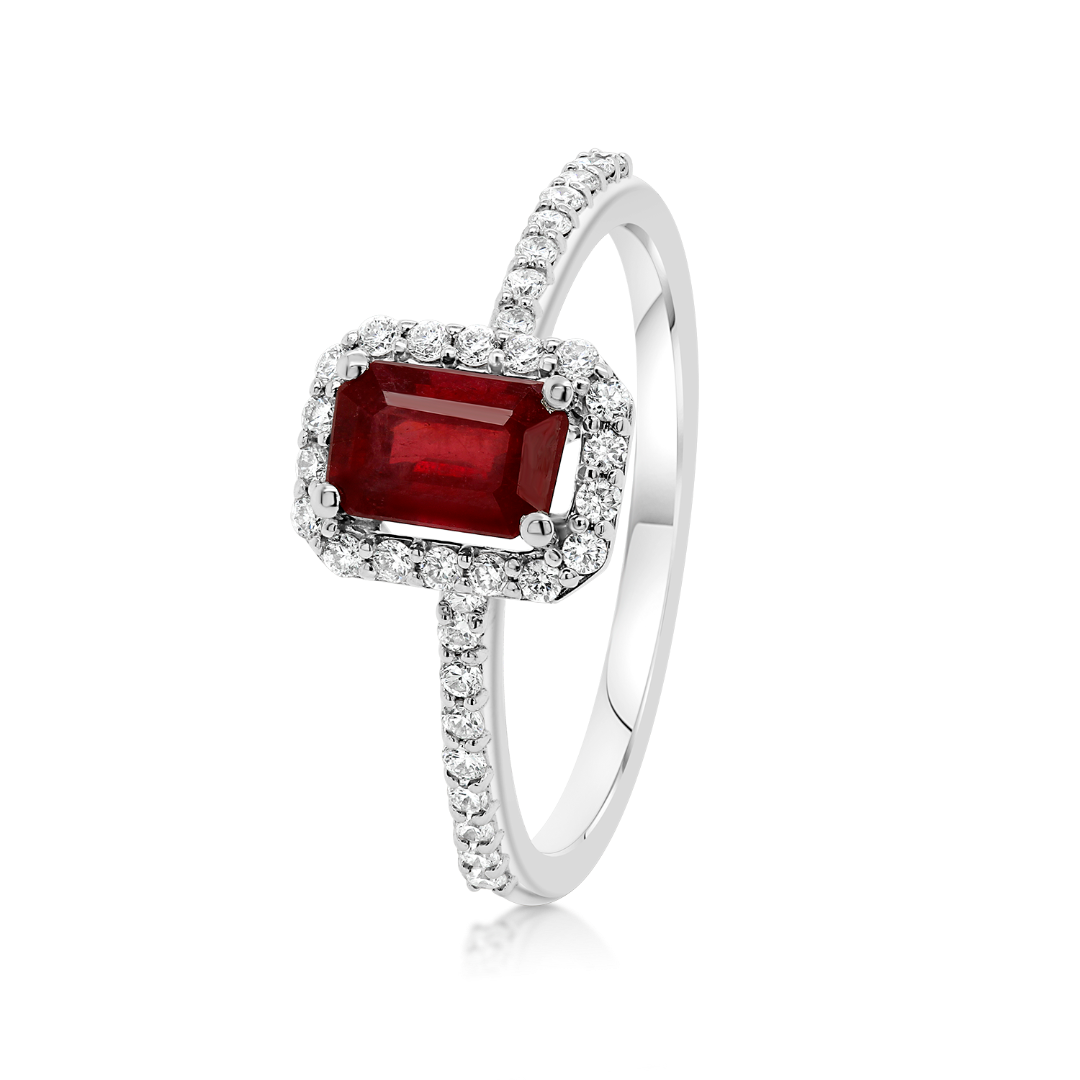 Inel din aur alb de 14K, încrustat cu Diamante de 0.210ct și un Rubin de 0.77ct.